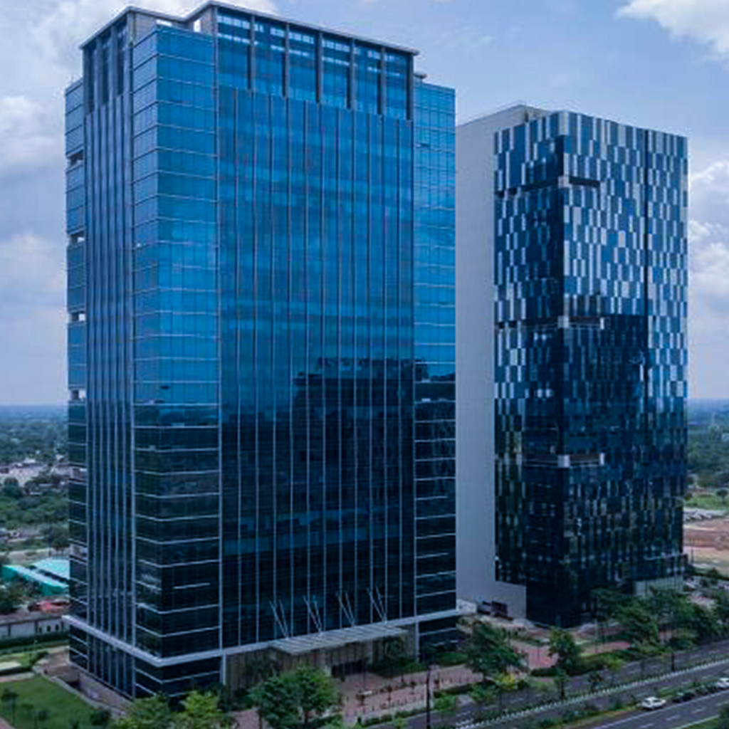 The GIFT ONE Tower is a 29-story, 122-meter-tall Grade A SEZ office building in GIFT City, featuring LEED-certified, state-of-the-art infrastructure complemented by a sleek modern glass façade.